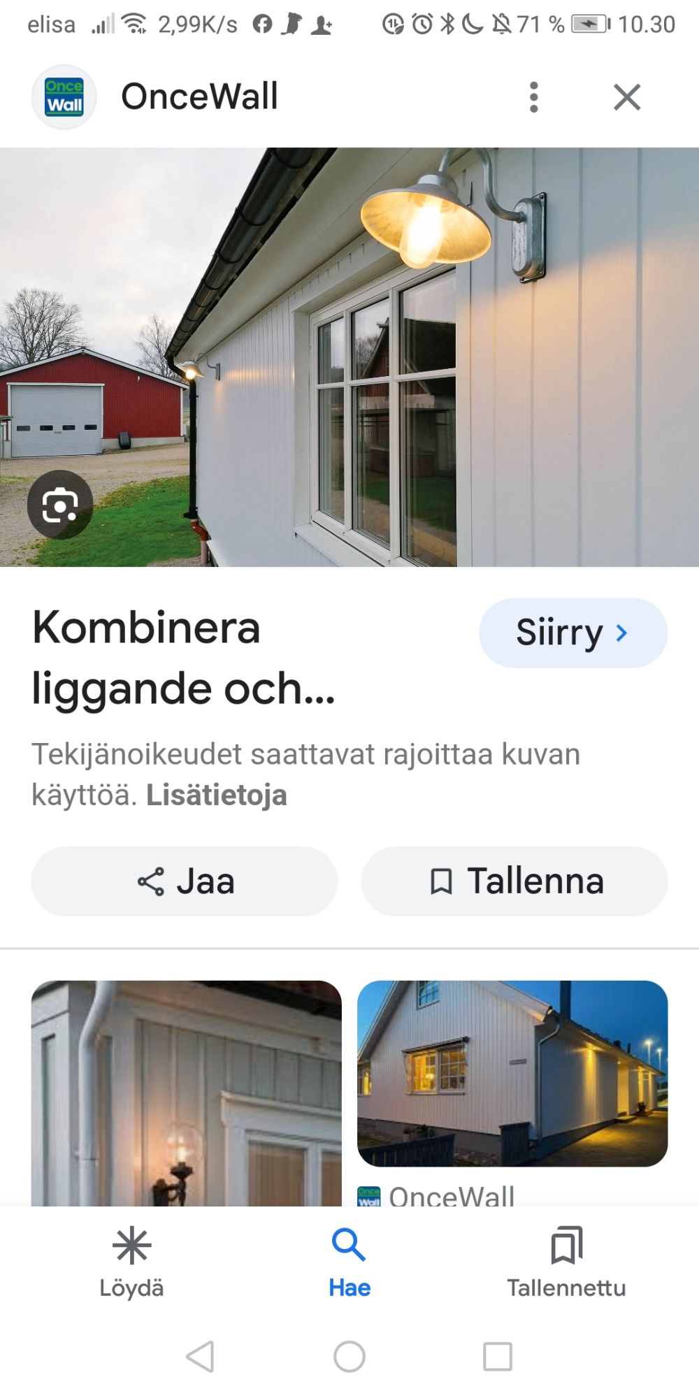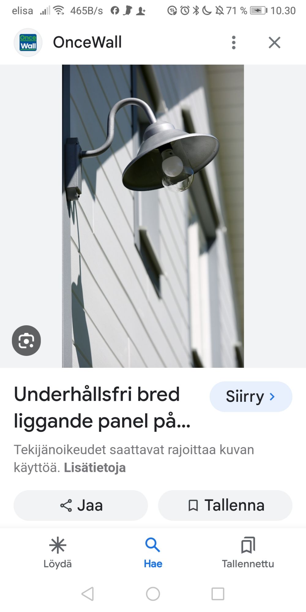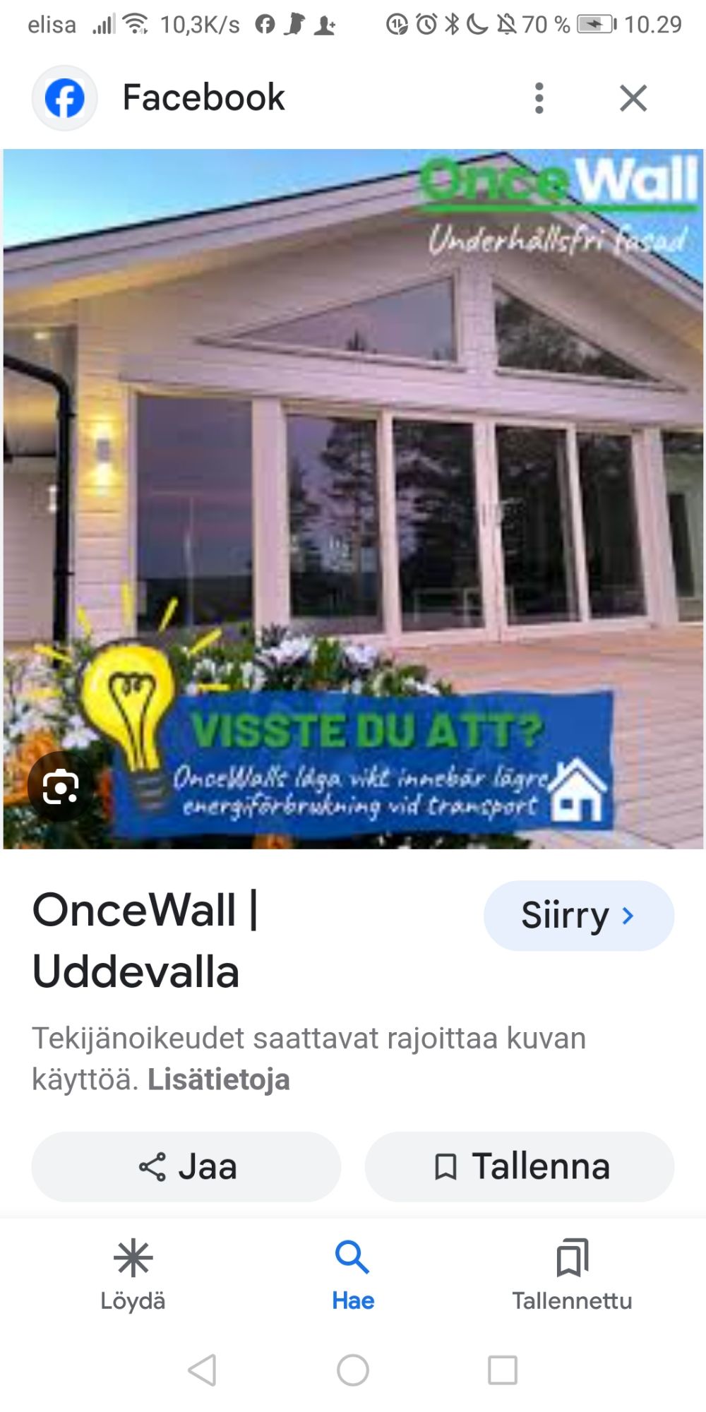 ?? TIESITKÖ, että voit KOOTA ilman naulakonetta, vasaraa ym, klik kuin Vinyyli lattia , kuin ” LEGO” valmiilla Rosteriruuveilla  ruotsalaisen OnceWallse 2000 luvun Energiaa säästävä Talon Ulkoverhous valmiisiin reikiin 40 cm välein. Kevyt, yksi 2 lauta on kerralla vajaa 2 m2 neliötä, Takuu heti 30 vuotta ilman huoltoa – MUTTA hinta sama kuin Puu paneelilla!