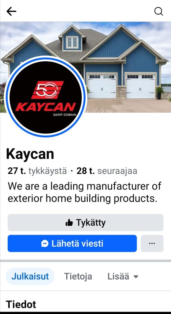 World leading Kanadalainen monipuolisin alansa Tehdas mm Vinyyli-Alumiini-Kiertopuu / mm paneelit-ikkunat-ovet KAYCAN.com jo 50 vuotta. Maahantuojana onnittelemme ja kiitämme pitkäaikaista yhteistyötämme. Myös ♻️ Kiertotalous on keskiössä Huoltovapauden 50 vuoden Tehtaantakuun kanssa jotta Asiakkaamme elämä olisi helpompaa ja rahaa + aikaa jäisi paljon JOHONKIN MUUHUN kuin jatkuvaan maalaamiseen – KAYCAN on Suomessa www.vinyylirakentaminen.fi klikkaa upeita värejä, valmiiksi Läpivärjättyjä paneeleita 50 v : ABC