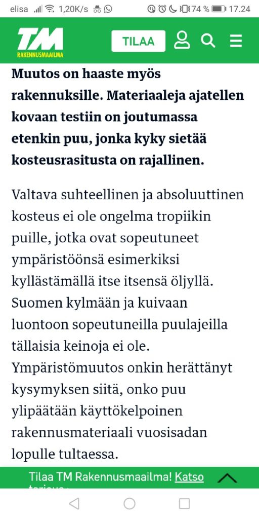 ⚠️YLE, ENTISAIKOJEN TALOT on… ” Ilmastonmuutos lisää mm rankka sateita niin talvella kuin kesällä…myrskytuulia, hellettä,  pakkasia ( 3 x parempi U-arvo vain 0,06 Wikipedia / puu + 0,17, Tiili + 0,20). OnceWall on juuri siksi tehty KAIKKIA ILMASTONMUUTOS olosuhteita varten. Lue lisää faktoja mm Ympäristö ♻️, BASTA Sertifikaatti +++ 30 vuoden Tehtaantakuu kaikki samalla puuverhouksen hinnalla + 30.000 kertyvillä säästöillä HUOLTOVAPAUDESTA :