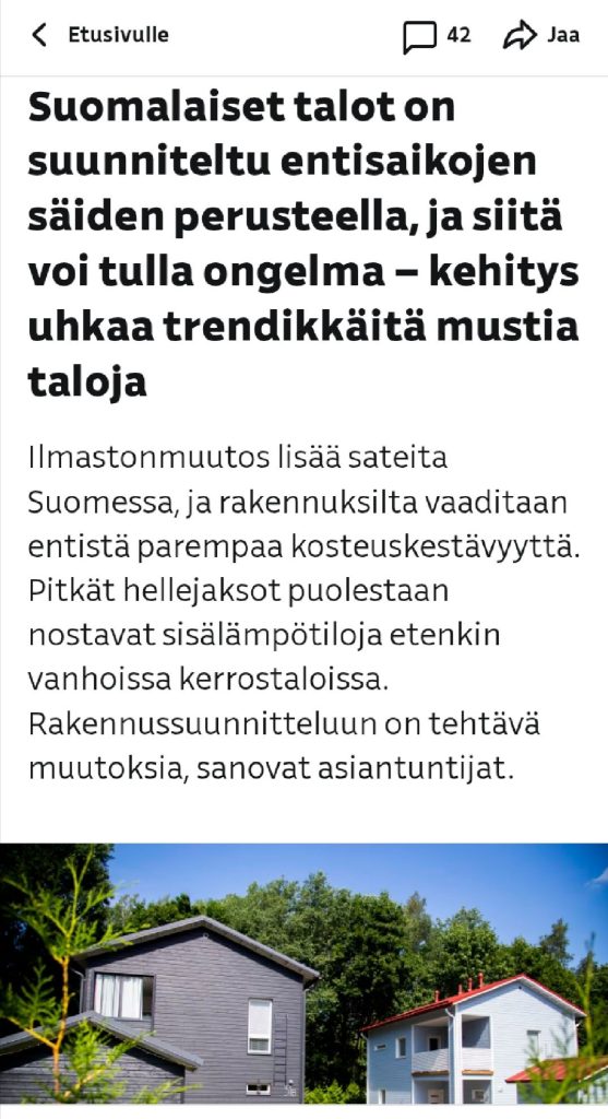 Suomalaiset talot on suunniteltu entisaikojen säiden perusteella, ja siitä voi tulla ongelma – kehitys uhkaa trendikkäitä mustia taloja / siksi OnceWall perusväri on valkoinen tai vaalea värikartasta, katso tästä ⚠️ linkistä alla 😐 Yle https://share.google/swPrHub8baWsfhb59